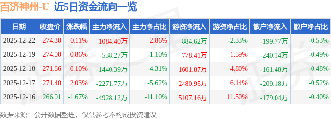 证券之星消息,截至2025年12月22日收盘,百济神州(688235)报收于274.3元,上涨0.11%,换手率1.2%,成交量1.38万手,成交额3.79亿元。