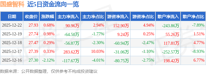 证券之星消息,截至2025年12月22日收盘,国盛智科(688558)报收于27.93元,上涨0.68%,换手率0.84%,成交量1.1万手,成交额3092.46万元。