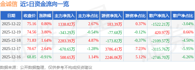 证券之星消息,截至2025年12月22日收盘,金诚信(603979)报收于75.16元,上涨0.8%,换手率1.07%,成交量6.69万手,成交额5.01亿元。