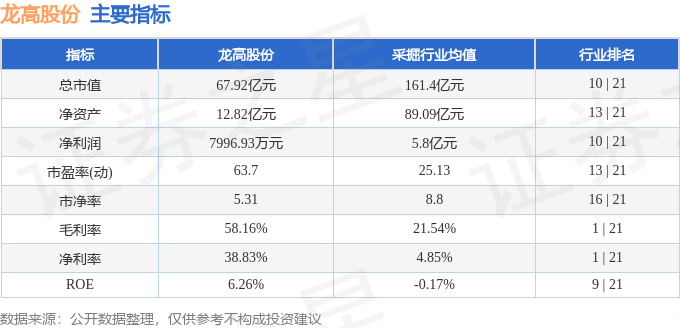 该股主要指标及行业内排名如下: