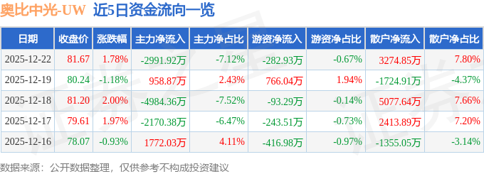 证券之星消息,截至2025年12月22日收盘,奥比中光(688322)报收于81.67元,上涨1.78%,换手率1.76%,成交量5.14万手,成交额4.2亿元。