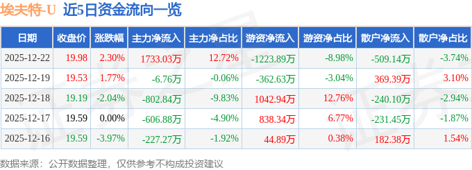 证券之星消息,截至2025年12月22日收盘,埃夫特(688165)报收于19.98元,上涨2.3%,换手率1.31%,成交量6.83万手,成交额1.36亿元。