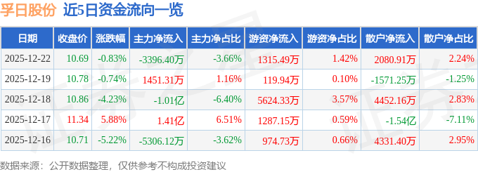 证券之星消息,截至2025年12月22日收盘,孚日股份(002083)报收于10.69元,下跌0.83%,换手率9.21%,成交量87.19万手,成交额9.28亿元。