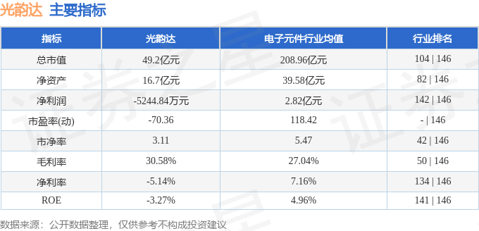 该股主要指标及行业内排名如下: