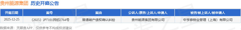 证券之星消息,根据天眼查APP显示,近日公布了一则贵州能源集团有限公司作为原告/上诉人的开庭公告,详细内容如下: