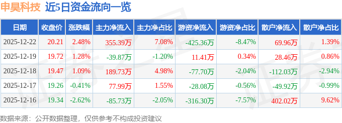 12月22日的资金流向数据方面,主力资金净流入355.39万元,占总成交额7.08%,游资资金净流出425.36万元,占总成交额8.47%,散户资金净流入69.96万元,占总成交额1.39%。