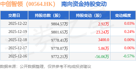 证券之星消息,12月22日南向资金增持2.92万股中创智领(00564.HK)。近5个交易日中,获南向资金减持的有1天,累计净减持23.7万股。近20个交易日中,获南向资金减持的有10天,累计净减持108.1万股。截至目前,南向资金持有中创智领(00564.HK)9804.57万股,占公司已发行普通股的40.3%。