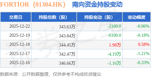 证券之星消息,12月22日南向资金减持2100.0股FORTIOR(01304.HK)。近5个交易日中,获南向资金减持的有4天,累计净减持4.19万股。近20个交易日中,获南向资金增持的有11天,累计净增持4100.0股。截至目前,南向资金持有FORTIOR(01304.HK)343.63万股,占公司已发行普通股的15.94%。