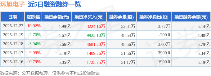 环旭电子融资融券信息显示,融资方面,当日融资买入2.04亿元,融资偿还1.72亿元,融资净买入3224.16万元。融券方面,融券卖出3.77万股,融券偿还0.0股,融券余量52.31万股,融券余额1516.47万元。融资融券余额5.14亿元。