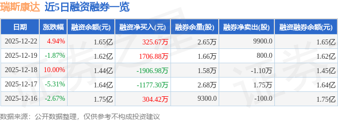 证券之星消息,截至2025年12月22日收盘,瑞斯康达(603803)报收于12.12元,上涨4.94%,换手率13.86%,成交量58.88万手,成交额7.04亿元。