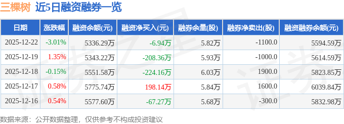 三棵树融资融券信息显示,融资方面,当日融资买入850.84万元,融资偿还857.78万元,融资净偿还6.94万元。融券方面,融券卖出1400.0股,融券偿还2500.0股,融券余量5.82万股,融券余额258.31万元。融资融券余额5594.59万元。