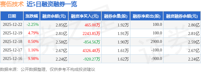 证券之星消息,截至2025年12月22日收盘,赛伍技术(603212)报收于14.34元,下跌2.25%,换手率9.03%,成交量39.51万手,成交额5.66亿元。