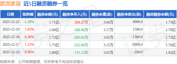欧派家居融资融券信息显示,融资方面,当日融资买入770.18万元,融资偿还485.91万元,融资净买入284.27万元。融券方面,融券卖出7100.0股,融券偿还2200.0股,融券余量3.66万股,融券余额191.31万元。融资融券余额1.73亿元。