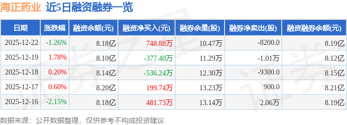海正药业融资融券信息显示,融资方面,当日融资买入1344.22万元,融资偿还595.34万元,融资净买入748.88万元。融券方面,融券卖出0.0股,融券偿还8200.0股,融券余量10.47万股,融券余额106.38万元。融资融券余额8.19亿元。