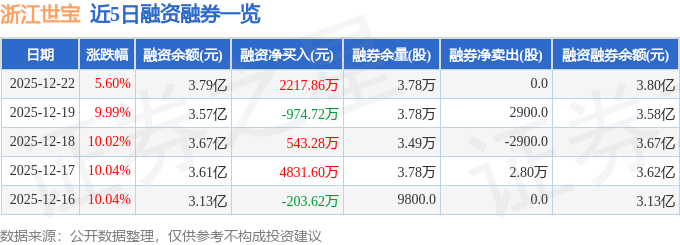 证券之星消息,截至2025年12月22日收盘,浙江世宝(002703)报收于18.49元,上涨5.6%,换手率18.67%,成交量109.43万手,成交额20.98亿元。