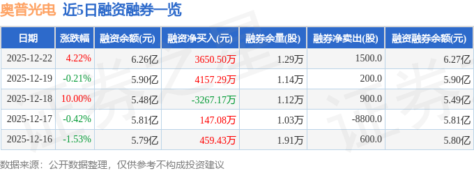 证券之星消息,截至2025年12月22日收盘,奥普光电(002338)报收于59.49元,上涨4.22%,换手率7.95%,成交量19.07万手,成交额11.11亿元。