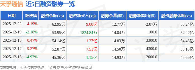 天孚通信融资融券信息显示,融资方面,当日融资买入22.77亿元,融资偿还13.77亿元,融资净买入9.0亿元,净买入额两市排名第2。融券方面,融券卖出4000.0股,融券偿还2.47万股,融券余量12.77万股,融券余额2848.69万元。融资融券余额63.24亿元。