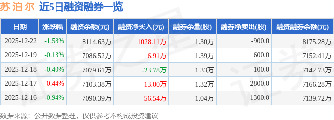 苏 泊 尔融资融券信息显示,融资方面,当日融资买入1407.67万元,融资偿还379.55万元,融资净买入1028.11万元。融券方面,融券卖出1700.0股,融券偿还2600.0股,融券余量1.3万股,融券余额60.65万元。融资融券余额8175.28万元。