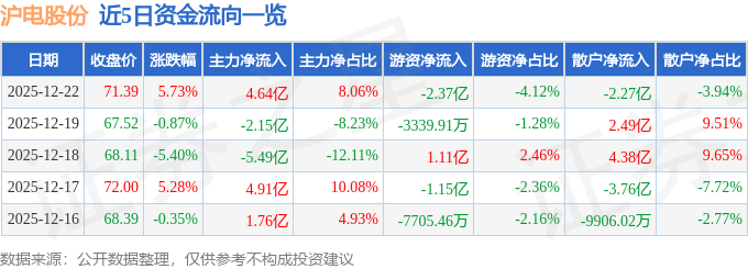 证券之星消息,截至2025年12月22日收盘,沪电股份(002463)报收于71.39元,上涨5.73%,换手率4.24%,成交量81.43万手,成交额57.5亿元。