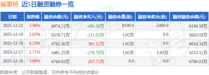 福事特融资融券信息显示,融资方面,当日融资买入476.52万元,融资偿还973.01万元,融资净偿还496.5万元。融券方面,融券卖出0.0股,融券偿还2400.0股,融券余量8100.0股,融券余额26.37万元。融资融券余额6100.58万元。