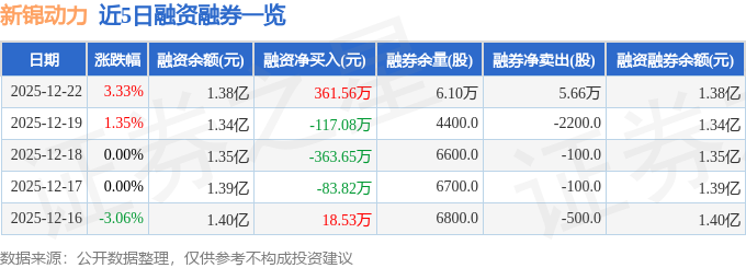 新锦动力融资融券信息显示,融资方面,当日融资买入1373.01万元,融资偿还1011.45万元,融资净买入361.56万元。融券方面,融券卖出5.66万股,融券偿还0.0股,融券余量6.1万股,融券余额28.36万元。融资融券余额1.38亿元。