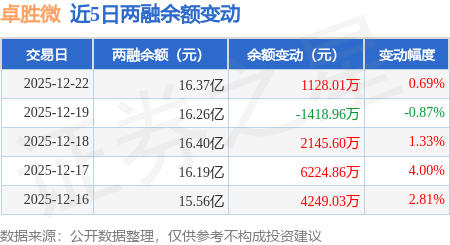证券之星消息,12月22日,卓胜微(300782)融资买入1.2亿元,融资偿还1.08亿元,融资净买入1103.06万元,融资余额16.32亿元,近20个交易日中有12个交易日出现融资净买入。