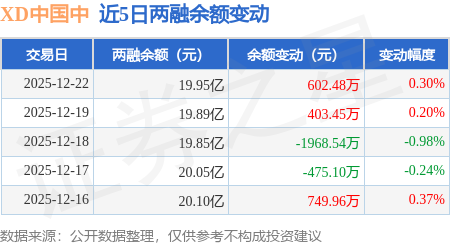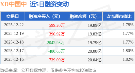 证券之星消息,12月22日,XD中国中(601390)融资买入3044.05万元,融资偿还2444.85万元,融资净买入599.2万元,融资余额19.89亿元。
