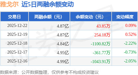 证券之星消息,12月22日,雅戈尔(600177)融资买入1165.84万元,融资偿还1130.65万元,融资净买入35.19万元,融资余额4.79亿元。