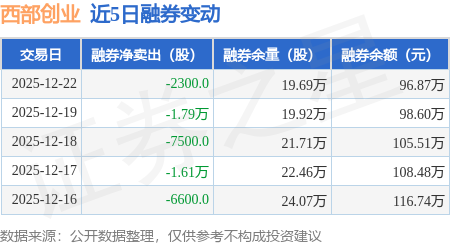 证券之星消息,12月22日,西部创业(000557)融资买入625.76万元,融资偿还597.45万元,融资净买入28.31万元,融资余额2.03亿元。