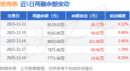 证券之星消息,12月22日,维海德(301318)融资买入194.57万元,融资偿还168.54万元,融资净买入26.03万元,融资余额8110.82万元,近3个交易日已连续净买入累计247.94万元,近20个交易日中有13个交易日出现融资净买入。