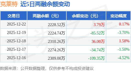 证券之星消息,12月22日,克莱特(920689)融资买入285.02万元,融资偿还281.23万元,融资净买入3.79万元,融资余额2228.52万元。