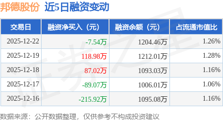 证券之星消息,12月22日,邦德股份(920271)融资买入143.8万元,融资偿还151.34万元,融资净卖出7.54万元,融资余额1204.46万元。