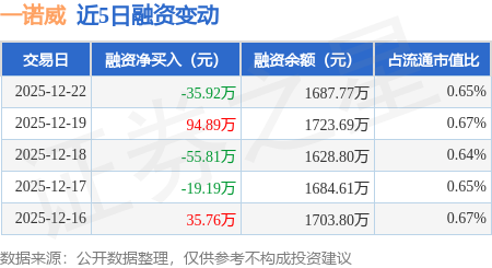 证券之星消息,12月22日,一诺威(920261)融资买入108.59万元,融资偿还144.51万元,融资净卖出35.92万元,融资余额1687.77万元,近20个交易日中有11个交易日出现融资净买入。