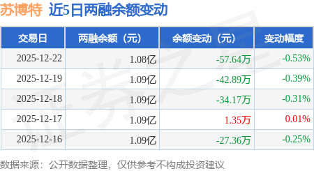 证券之星消息,12月22日,苏博特(603916)融资买入252.55万元,融资偿还316.52万元,融资净卖出63.97万元,融资余额1.08亿元。
