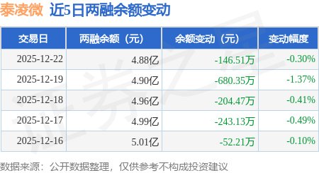 证券之星消息,12月22日,泰凌微(688591)融资买入1558.7万元,融资偿还1705.78万元,融资净卖出147.08万元,融资余额4.88亿元。