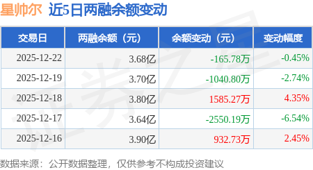 证券之星消息,12月22日,星帅尔(002860)融资买入1148.89万元,融资偿还1315.3万元,融资净卖出166.4万元,融资余额3.68亿元。