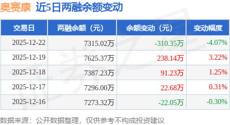 证券之星消息,12月22日,奥赛康(002755)融资买入463.09万元,融资偿还738.58万元,融资净卖出275.49万元,融资余额7313.69万元。