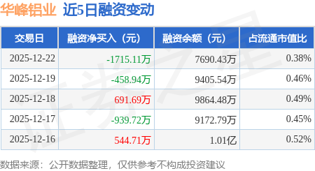 证券之星消息,12月22日,华峰铝业(601702)融资买入908.87万元,融资偿还2623.98万元,融资净卖出1715.11万元,融资余额7690.43万元。