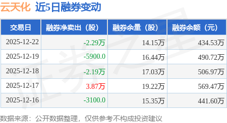 证券之星消息,12月22日,云天化(600096)融资买入1.39亿元,融资偿还1.57亿元,融资净卖出1816.46万元,融资余额19.84亿元。