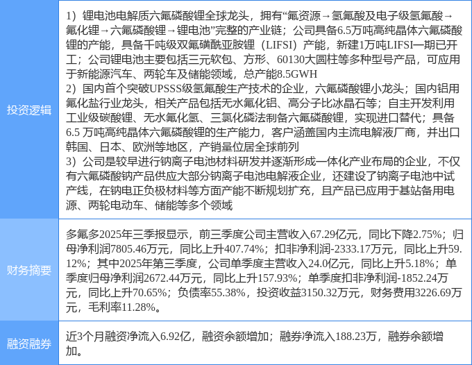 该股为锂电池,氟化工,钠电池概念热股,当日锂电池概念上涨2.3%,氟化工概念上涨2.23%,钠电池概念上涨1.89%。
