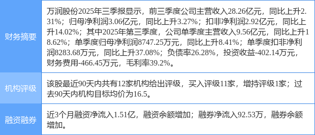 今日万润股份(002643)涨10.01%,收盘报16.38元。