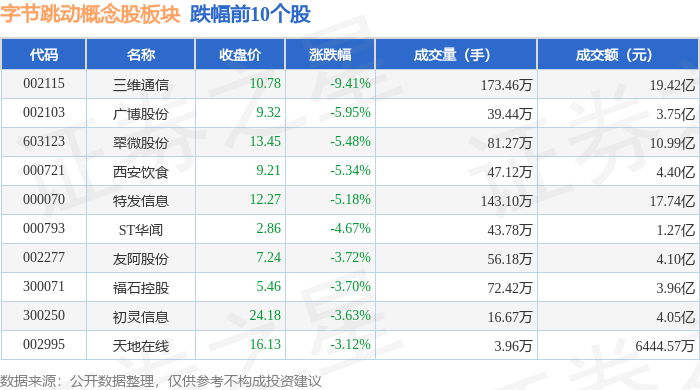 证券之星消息,12月23日字节跳动概念股板块较上一交易日下跌1.11%,三维通信领跌。当日上证指数报收于3919.98,上涨0.07%。深证成指报收于13368.99,上涨0.27%。字节跳动概念股板块个股涨跌见下表: