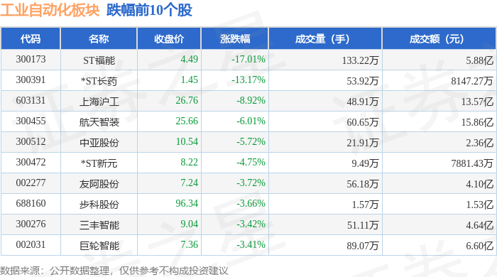 从资金流向上来看,当日工业自动化板块主力资金净流出9.24亿元,游资资金净流出4.54亿元,散户资金净流入13.78亿元。工业自动化板块个股资金流向见下表: