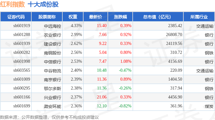 红利指数(000015)十大成份股详情如下: