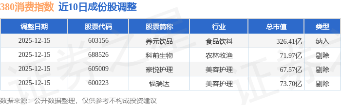 近10日内380消费(000108)指数成份股做了调整,新纳入了1只股票,剔除了3只股票。