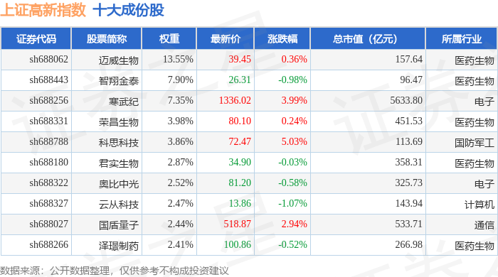 证券之星消息,12月23日,上证高新(000131)指数报收于3531.67点,涨0.21%,成交383.84亿元,换手率1.37%。当日该指数成份股中,上涨的有14家,科思科技以5.03%的涨幅领涨,下跌的有36家,七一二以4.32%的跌幅领跌。