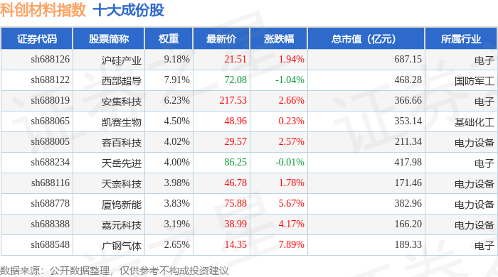 近10日内科创材料(000689)指数成份股做了调整,新纳入了2只股票,剔除了2只股票。
