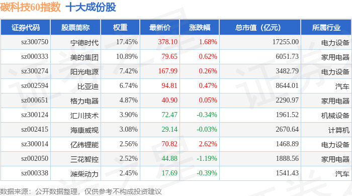 证券之星消息,12月23日,碳科技60(399060)指数报收于3396.66点,涨1.08%,成交1093.13亿元,换手率1.59%。当日该指数成份股中,上涨的有35家,英维克以10.0%的涨幅领涨,下跌的有24家,四维图新以2.44%的跌幅领跌。
