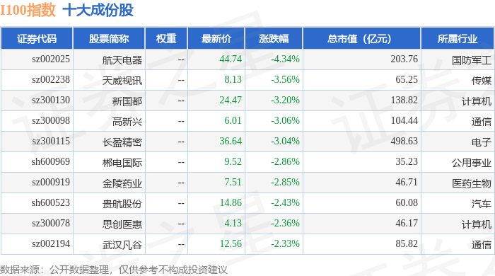 证券之星消息,12月23日,I100(399415)指数报收于7072.87点,涨0.48%,成交1077.62亿元,换手率0.52%。当日该指数成份股中,上涨的有29家,亿纬锂能以2.62%的涨幅领涨,下跌的有63家,航天电器以4.34%的跌幅领跌。
