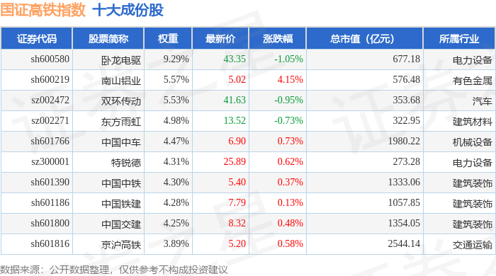国证高铁(399419)指数十大成份股详情如下: